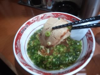 なかなか大きく、しかも厚い。増量したのでこれが全部で8枚入っていました。 パクつくと口の中にジューシーなチャーシューの味が広がります。味付け自体には特に特徴的なものは感じられず、一般的なチャーシューの味でした。8枚も食べると、「食ったぞ」という充実感が得られますね。